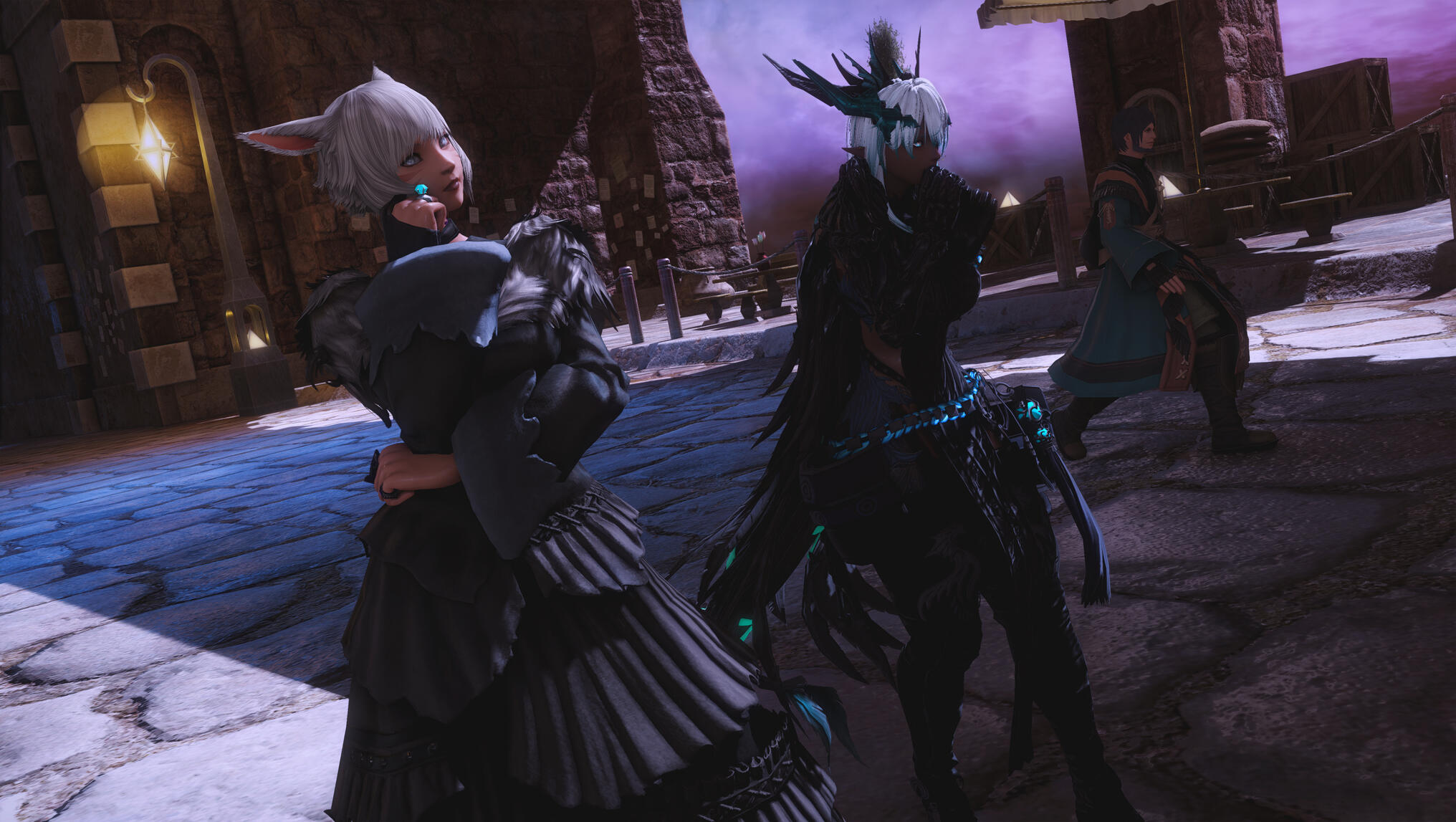 Relief passed between Aldra and Y’shtola in a shared glance. After brief farewells, Gek departed, already half-turned toward another world and another duty.As the square settled back into its rhythm, Y’shtola studied her wife with open admiration. “You’ve changed again,” she said softly. “And somehow, you’re even more beautiful.”Aldra felt warmth rise to her cheeks as she squeezed Y’shtola’s hand. “Let’s rest tonight,” she said, smiling. “Jeuno can wait until morning.”Together, they turned toward the light of the Crystarium, hearts steady, steps aligned, ready for whatever lay ahead.