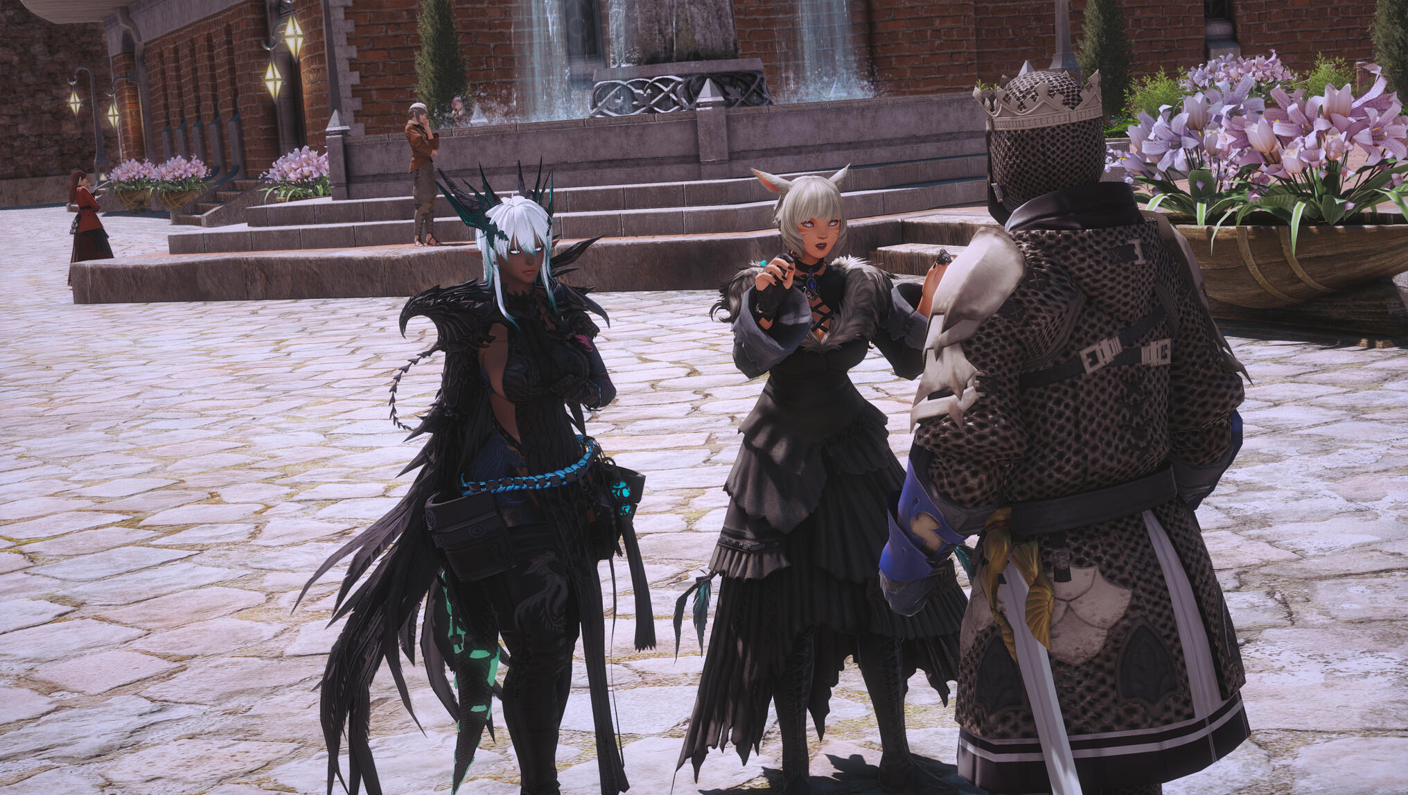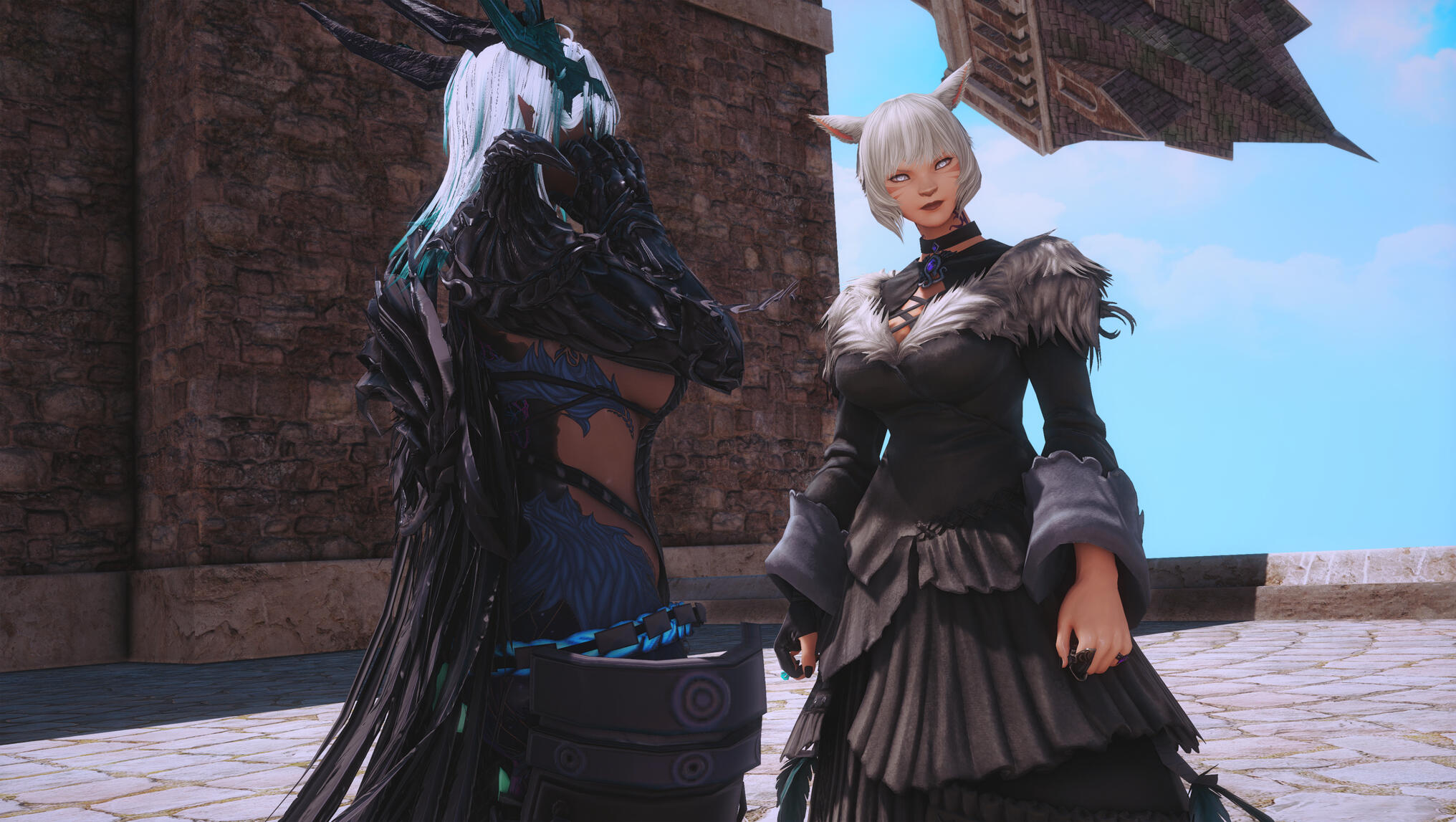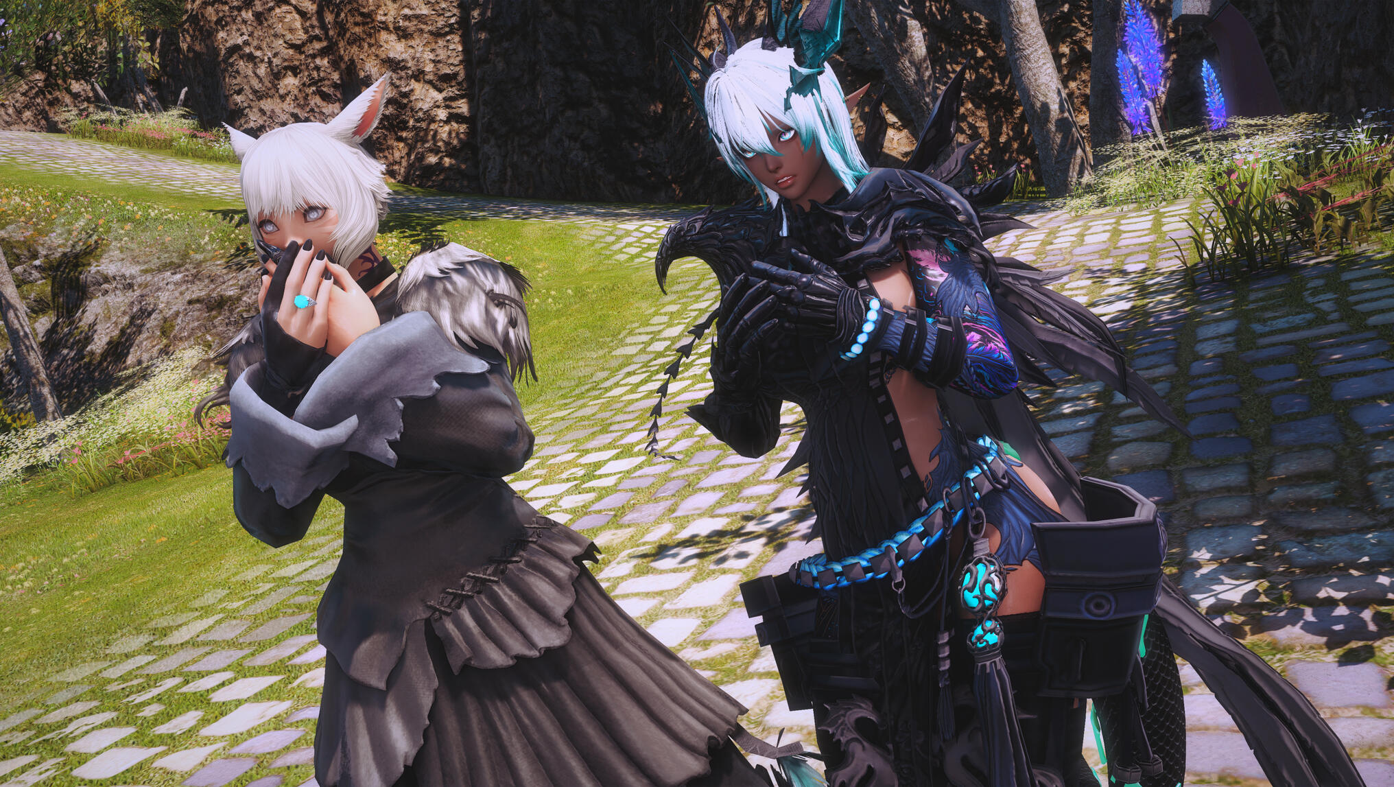They were still lingering in the quiet of the Rising Stones when a bright, unmistakable voice cut through the reverence like a bell.“Well! Y’shtola—and Aldra together?!”Both of them startled. Aldra’s shoulders tensed on instinct, while Y’shtola turned smoothly, already masking her surprise. Tataru bustled toward them, hands planted firmly on her hips, eyes sharp beneath her cheerful smile.“And Aldra,” she added pointedly, gaze flicking to the dark armor hugging her frame, “don’t tell me you’re wearing armor again. If Blue finds out, I’ll be the one listening to the lecture—and your wife won’t enjoy hearing it twice.”Y’shtola stepped in before Aldra could protest, her tone light, almost teasing. “It’s only for today, Tataru. She wore this same armor in the First. It felt… appropriate.”Tataru opened her mouth to retort, then noticed the sapphire ring glinting softly on Y’shtola’s hand. Her expression shifted, sternness melting into something gentler. “Ah. Well.” She sighed, relenting. “I suppose I can overlook it—just this once.”
