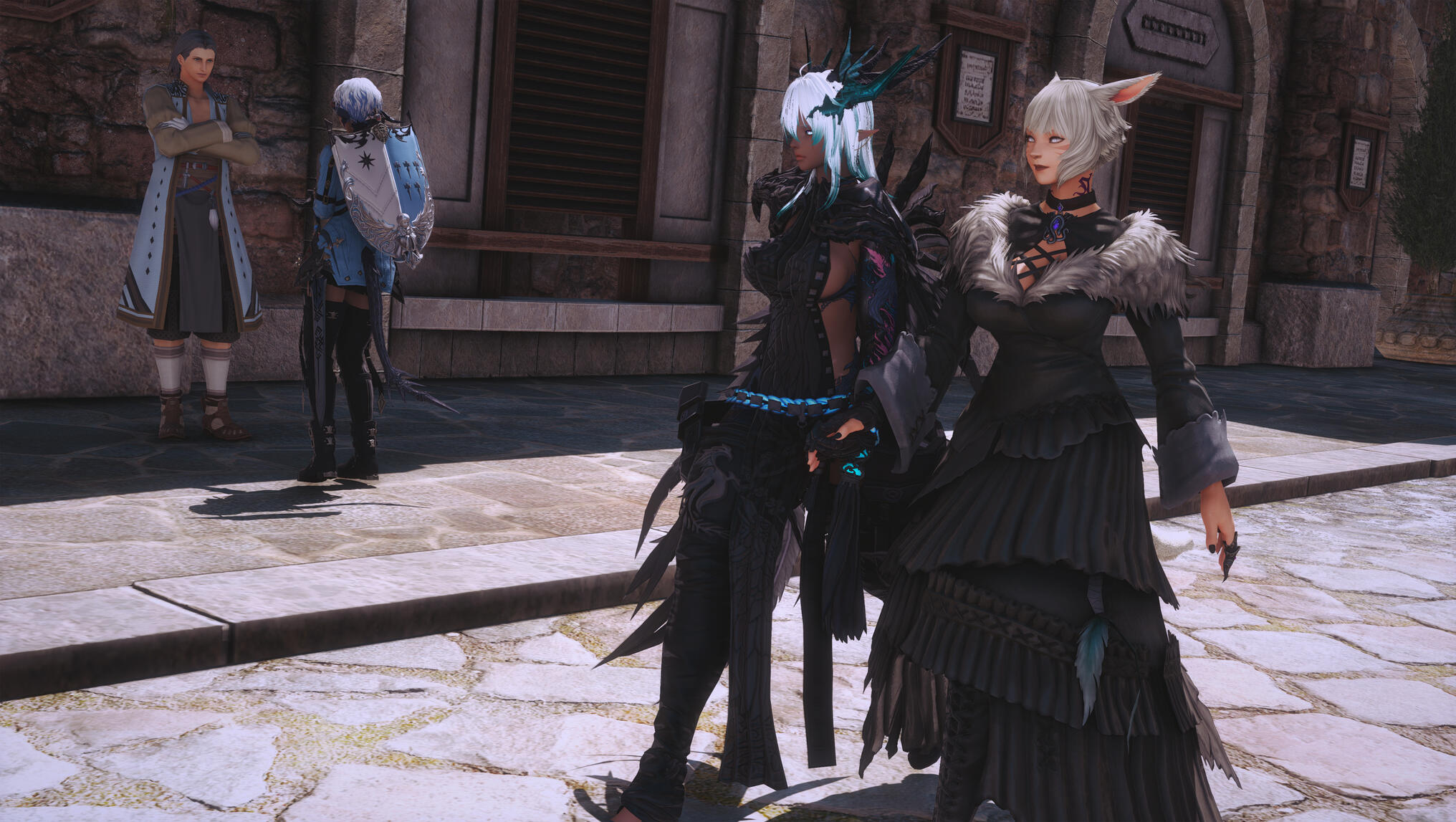 Near the keep, they passed a mother watching her child laugh beside a fountain, a young girl studying the stonework as though imagining her future carved among it. Small lives. Quiet hopes. Proof that Jeuno had been spared the scars borne elsewhere.At the gate, Y’shtola questioned the guard once more with practiced courtesy. The answer was the same—peaceful, uneventful, unbroken.They thanked him and turned away together, choosing rest over impatience.Whatever waited within Jeuno, it was not finished with them yet.