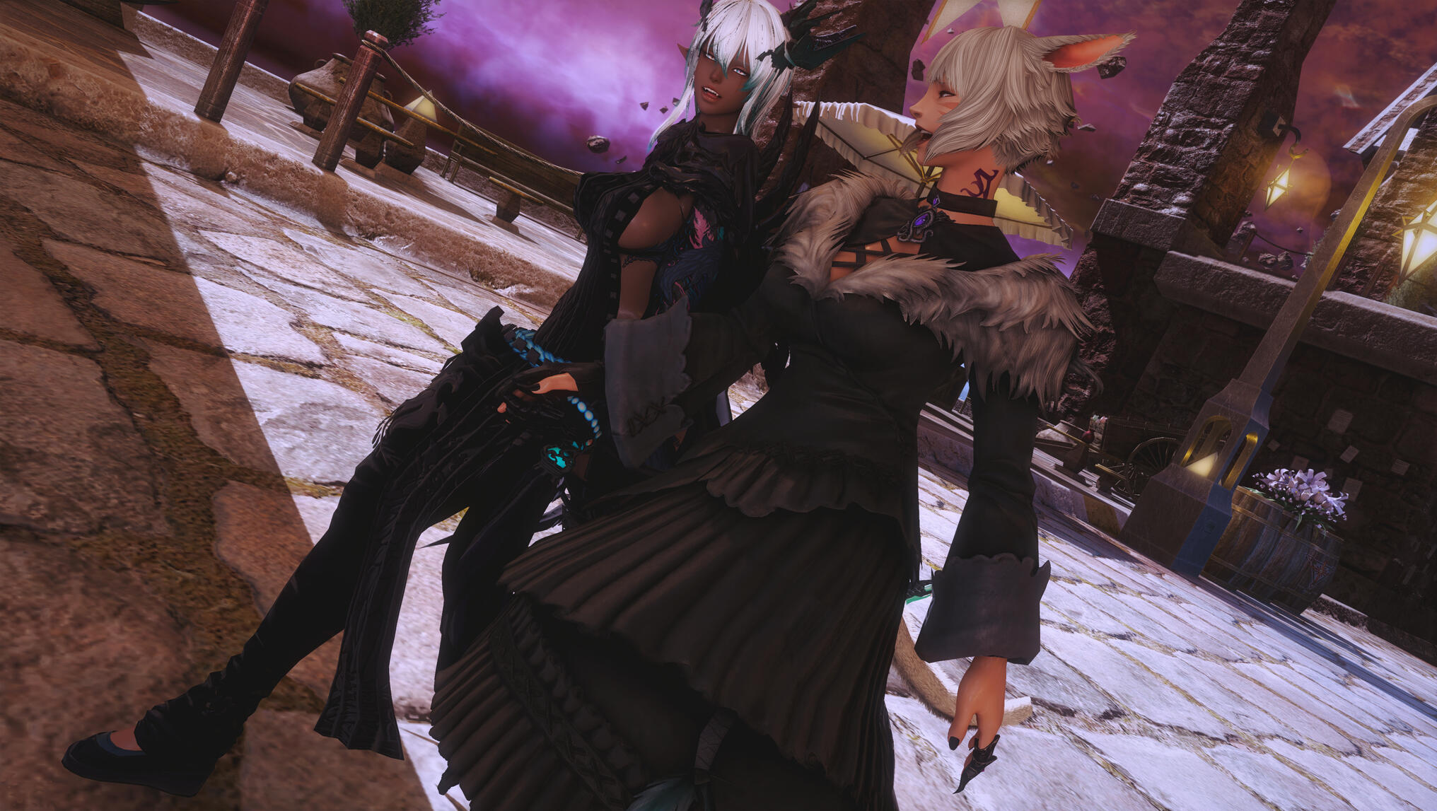 Y’shtola laughed under her breath, then reached out, resting a reassuring hand at the small of Aldra’s back. “I am grateful,” she admitted quietly. “For Gek. For tonight. And for the chance to walk beside you like this—knowing I did not steal your future, but helped uncover it.”Aldra leaned subtly into the touch, her hand finding Y’shtola’s in return. “We found it together,” she said simply.The doors of the Pendants awaited them, promising rest before their journey to Jeuno at dawn. As they stepped inside, smiles shared and voices low with private laughter, the weight of battle and old regrets faded into the background.Tonight was for recovery, warmth—and the simple joy of being together, unbound at last.